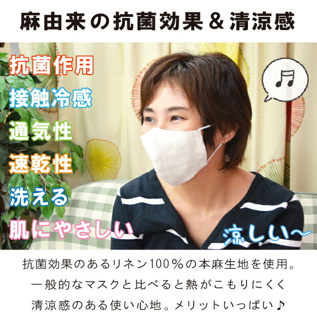 本麻 マスク リネン 麻100% フリーサイズ 日本製 国産 天然繊維 麻マスク 抗菌 ひんやり感 涼感 清涼感 速乾性 オールシーズン 冷感 接触冷感 夏用マスク 涼しいマスク ひんやりマスク 涼感 蒸れない サラサラ